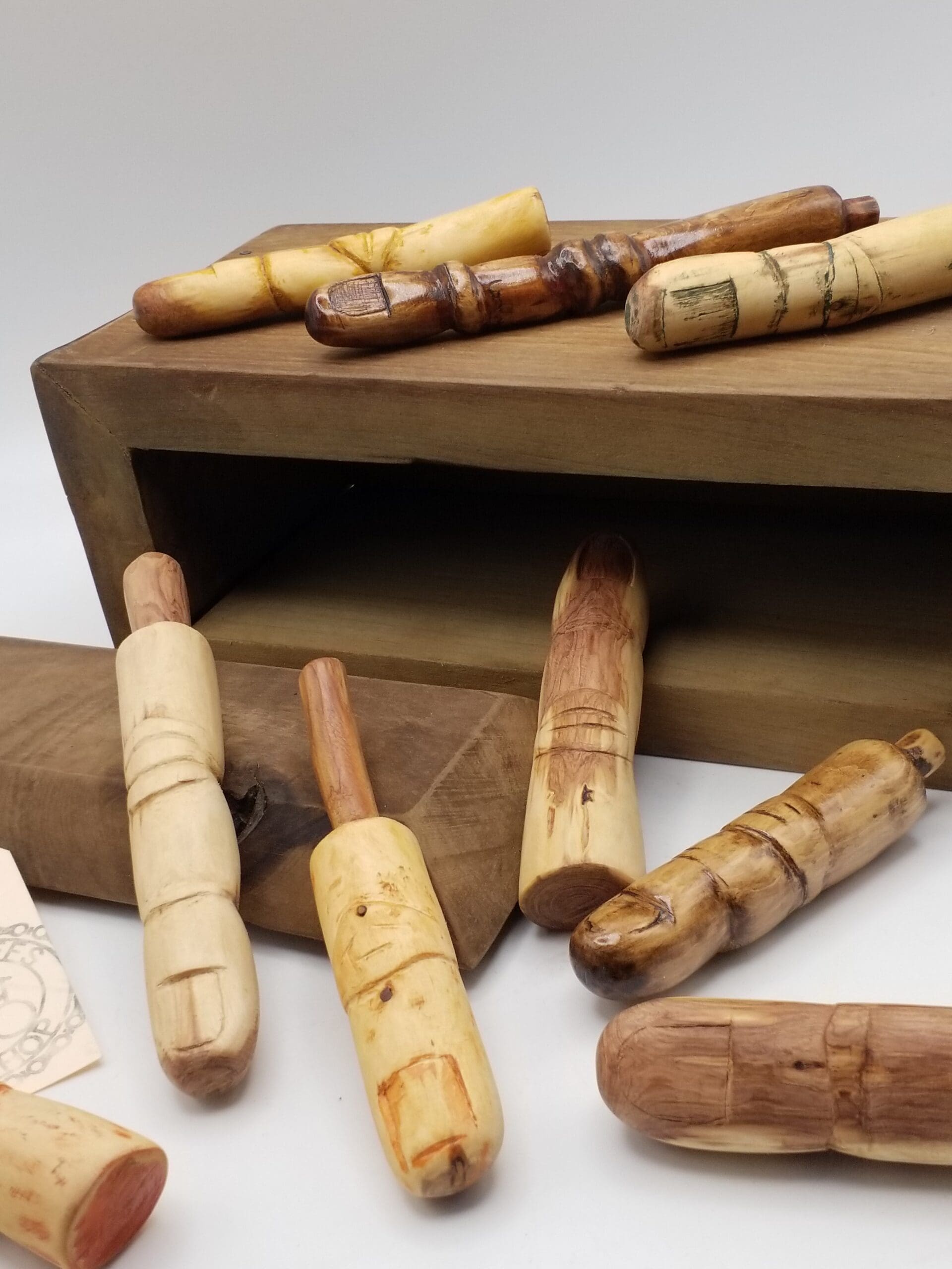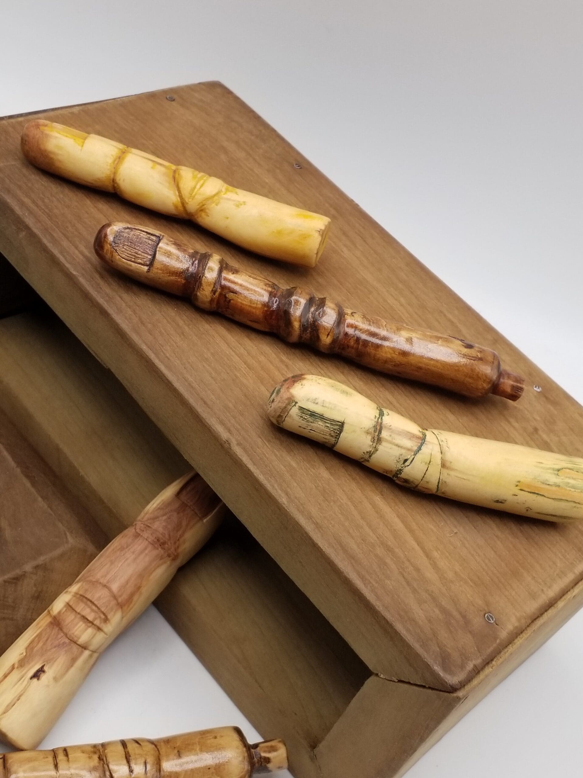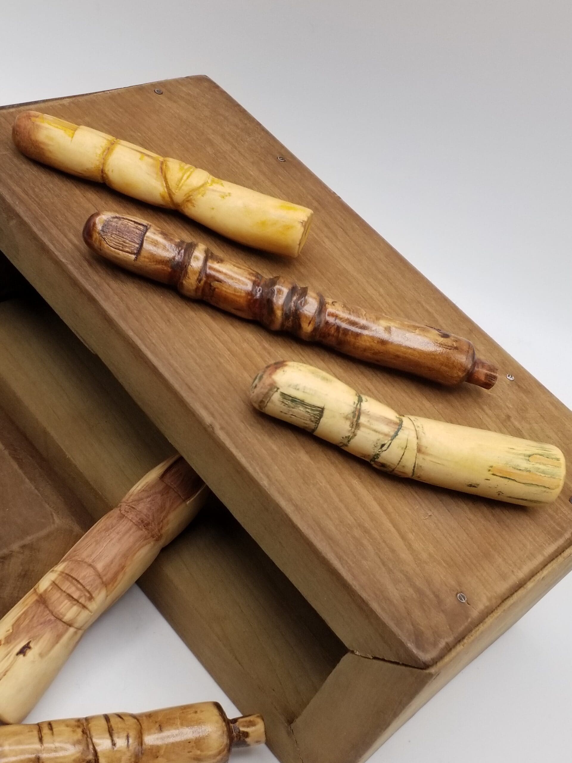 Whittled fingers range in size, approximately 4 inches long x 3/4 inch wide.