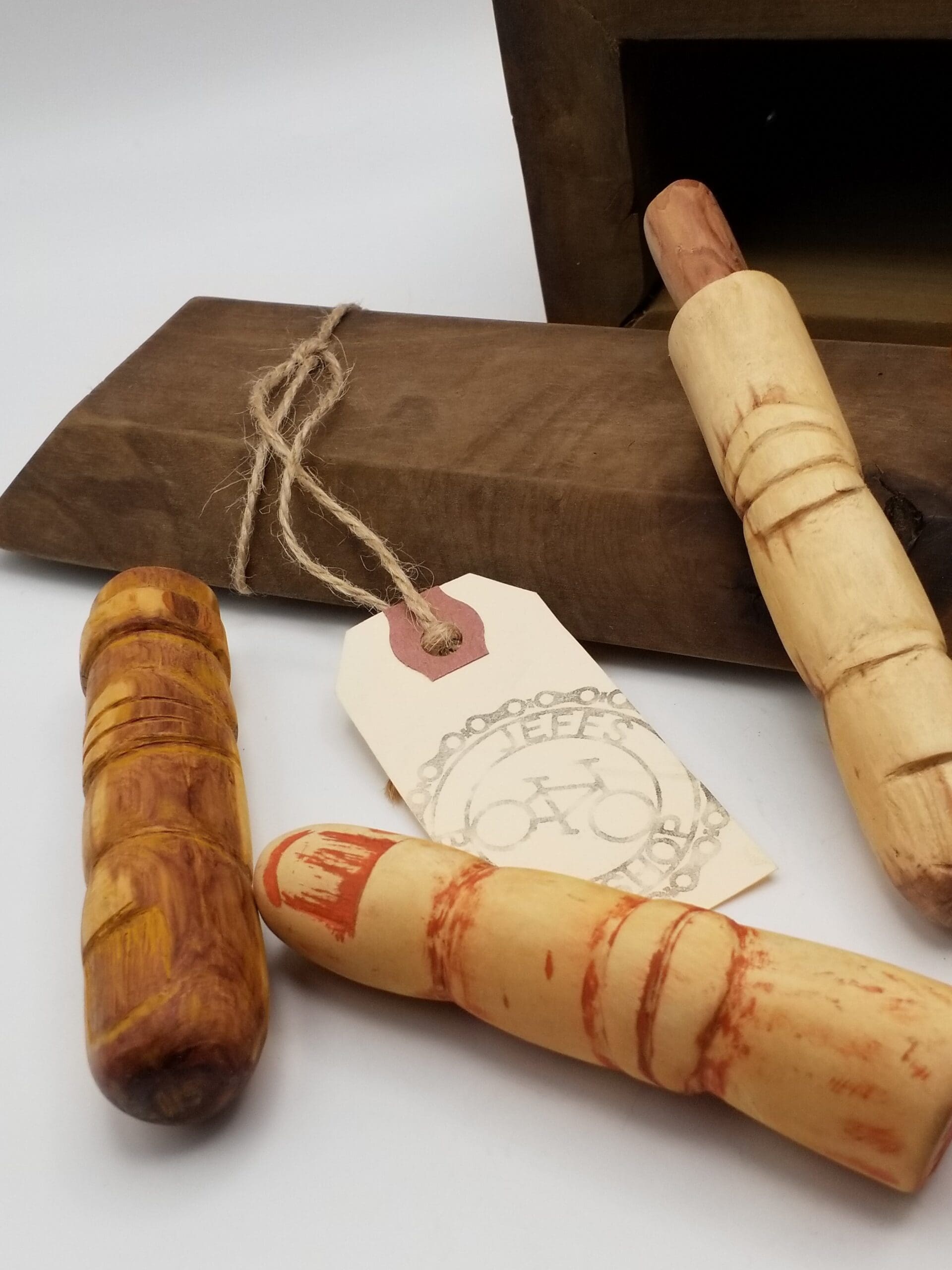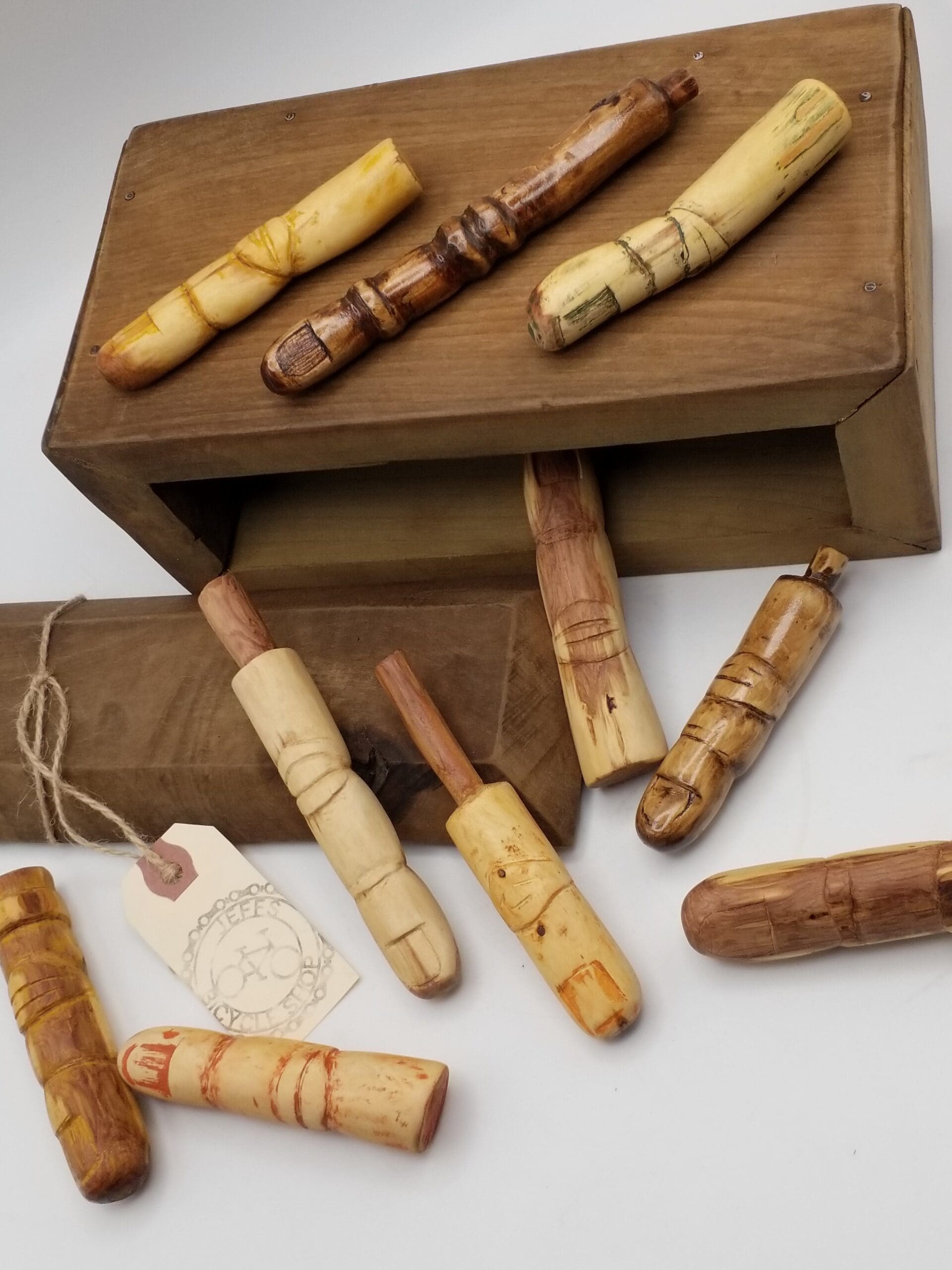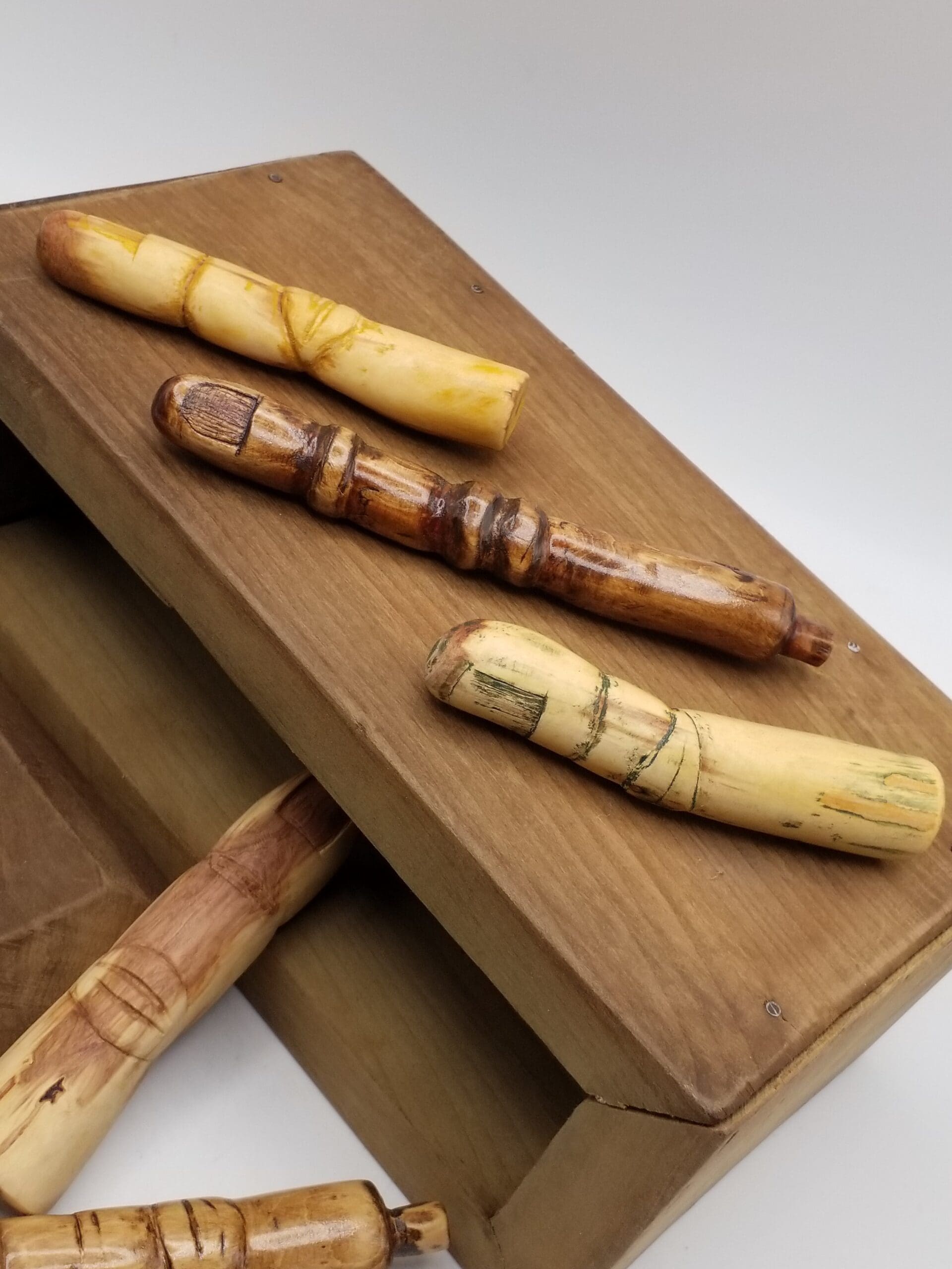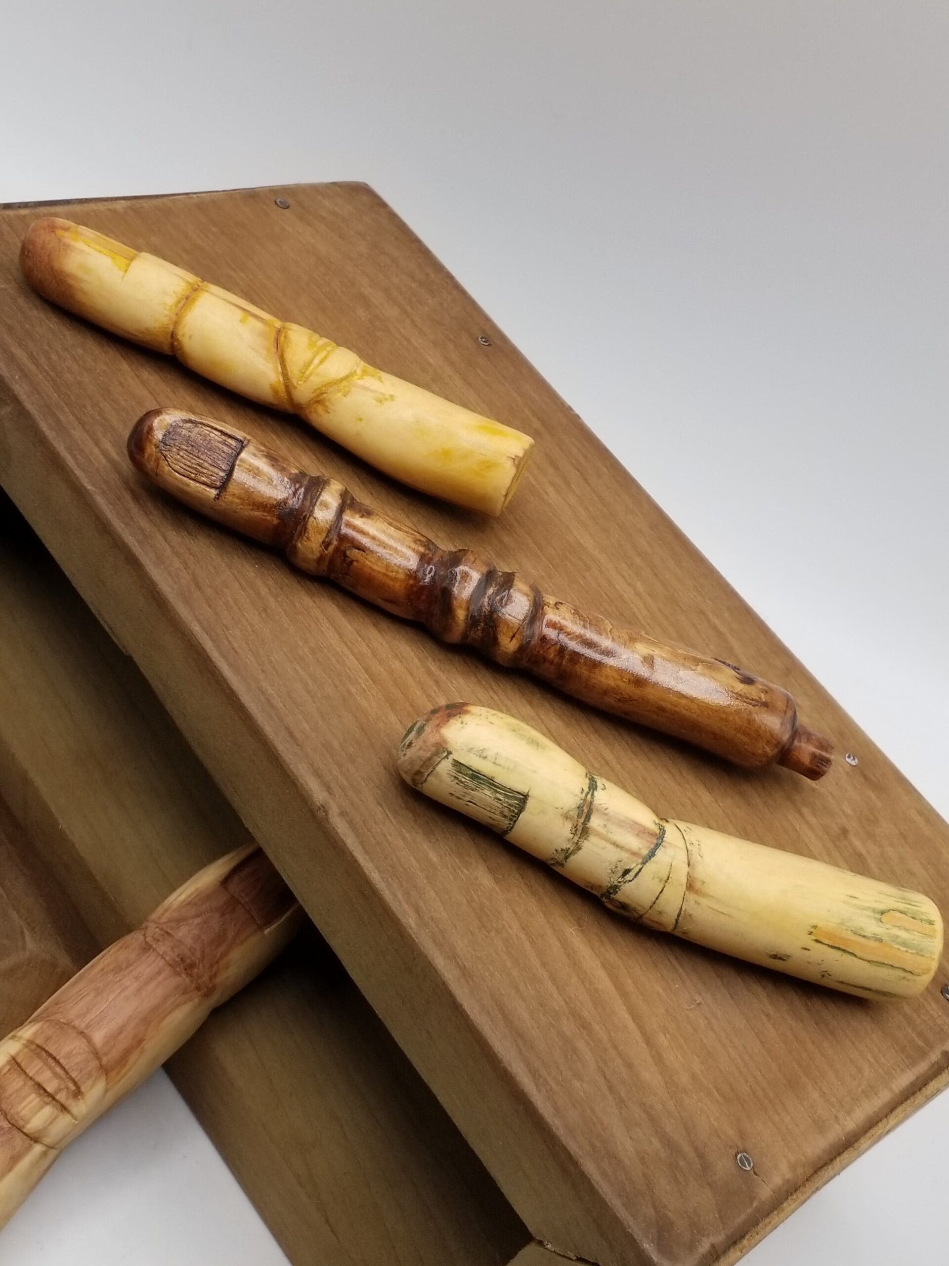 Whittled fingers range in size, approximately 4 inches long x 3/4 inch wide.