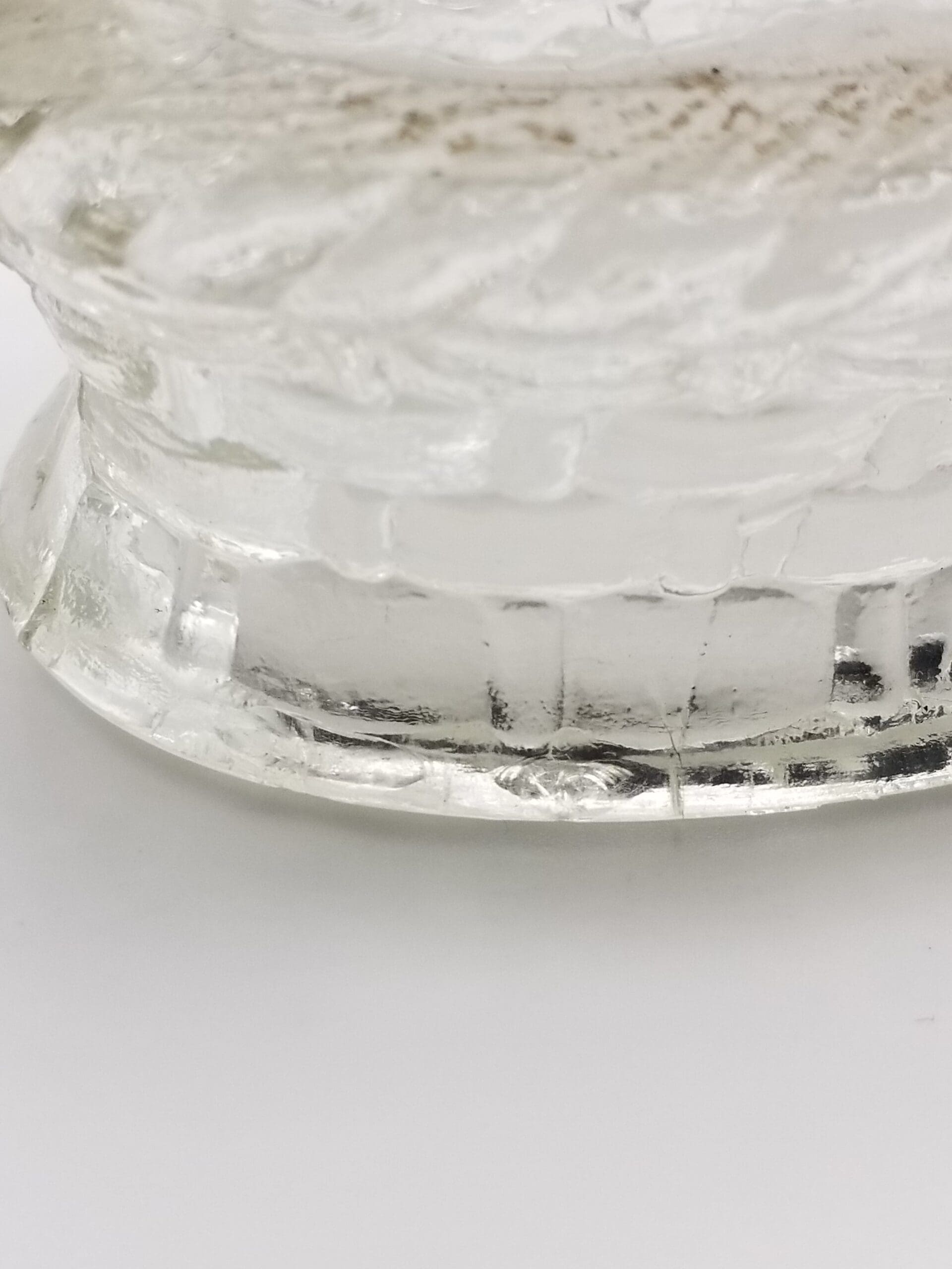 Clear Glass Lid measures 2 1/2 inches wide x 4 inches long x 4 1/2 inches tall. Clear glass lid has two tiny chips (see detail photo)